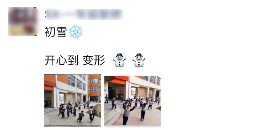 “学生们在雪中尽情跳跃、欢呼,将纯真编制进美丽的校园内”