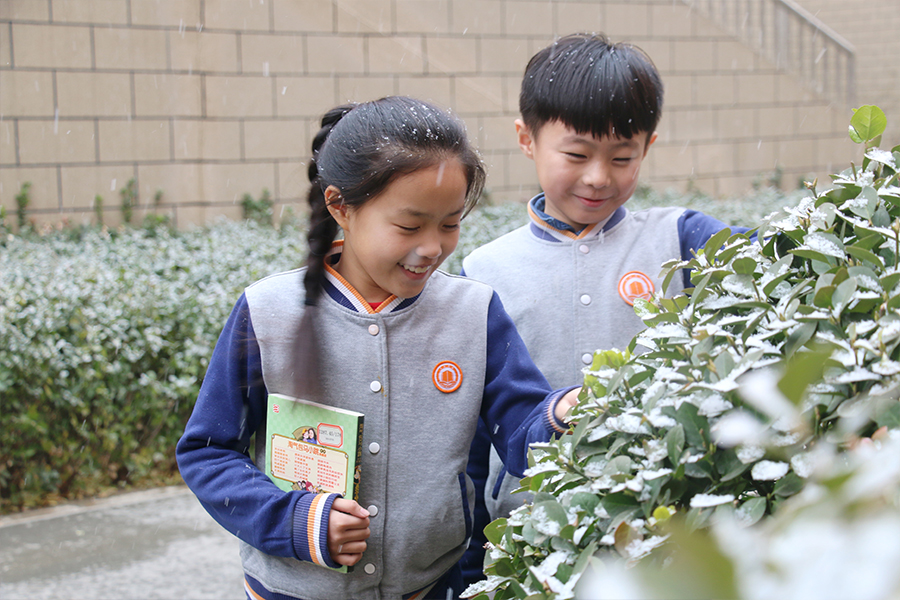 缓缓飘落在长城学校的每个角落