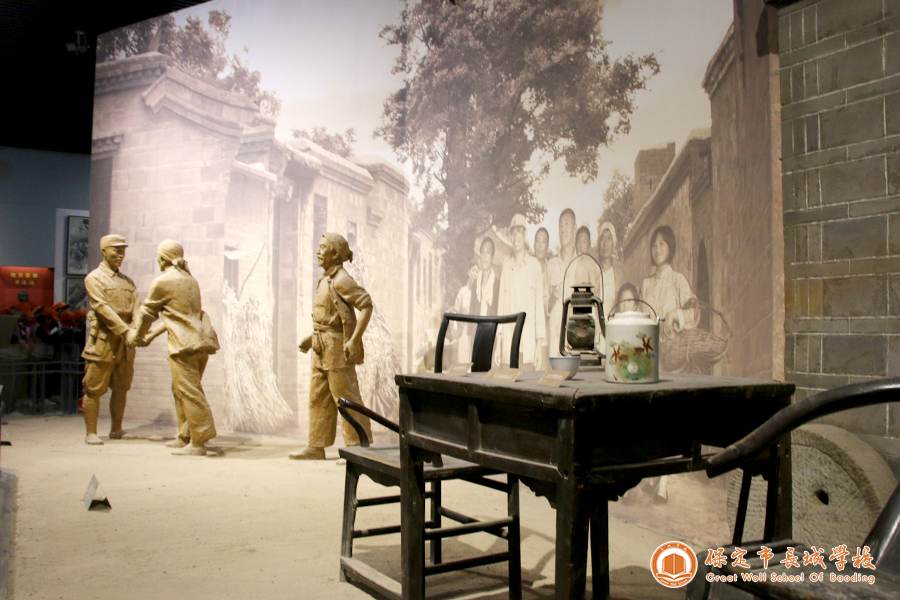 在同学们的热切期盼中,大家到达了位于保定市西南30公里处的冉庄。一座庄严肃穆的建筑映入眼帘,正上方悬挂着杨成武将军提写的“冀中冉庄地道战展厅”牌匾。